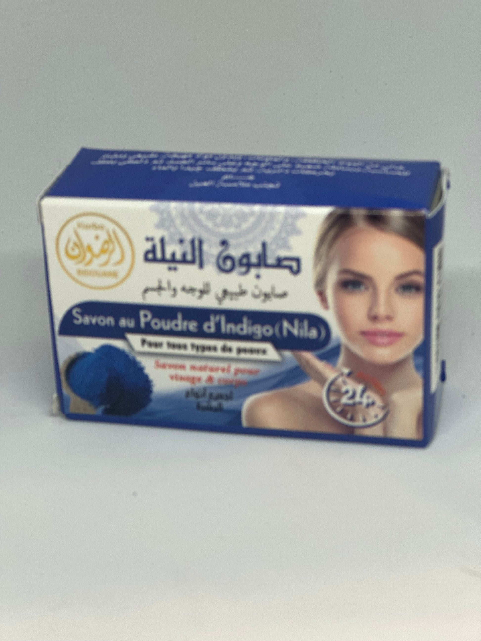 De natuurlijke Marokkaanse blauwe nila zeep inmasseren op een vochtige huid, paar minuten laten intrekken en daarna goed afspoelen met lauwe water.